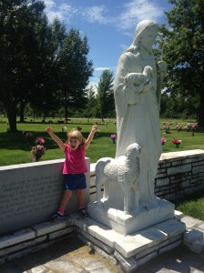 “Little sister picked out purple flowers for Kyleigh today. It would have been her first day of kindergarten. A day when she’s missed a little more than usual. After helping with the flowers, little sister asked to go “see Jesus” and was quite excited when she got there, shouting, “Jesus!” over and over again. You can’t argue with that!”